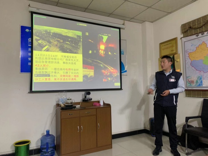 2023年11月9日是第32個全國消防日,為認真落實安全專項活動,切實提高大家消防安全意識和技能,避免重特大傷亡及火災事故的發生,確保公司消防安全工作穩定,結合消防宣傳月的活動要求,我們邀請到河南省消防協會義務消防科普宣傳服務隊周躍宗教員,為公司員工進行“預防為主、生命至 上”主題消防安全培訓。